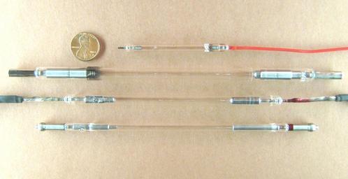 | Keywords: Three xenon flashtubes and a krypton arc lamp.jpg NoCoins en The first three from the top are xenon flashtubes The bottom one is a krypton arc lamp which has a smaller diameter higher pressure thinner glass for better cooling and a cathode with a sharp tip The anodes are on the right hand side and the cathodes are on the left The second flashtube is designed for water cooling and portions of the glass can be seen that have been shrunken around the electrodes also for cooling This flashtube shows signs of sputter around its cathode appearing as dark deposits of metal on the glass A penny is shown for size own 18 03 14 September 2009 UTC Zaereth talk Zaereth en Original upload log en wikipedia ftcg page en wikipedia Three_xrenon_flashtubes_and_a_krypton_arc_lamp JPG wikitable - 18 03 14 September 2009 2 832 × 1 458 984 366 bytes Zaereth w en <nowiki> The first three from the top are xenon flashtubes The bottom one is a krypton arc lamp which has a smaller diameter and a cathode with a sharp tip The anodes are on the right hand side and the second flashtube shows si </nowiki> Laser physics Xenon Krypton gas discharge lamps |