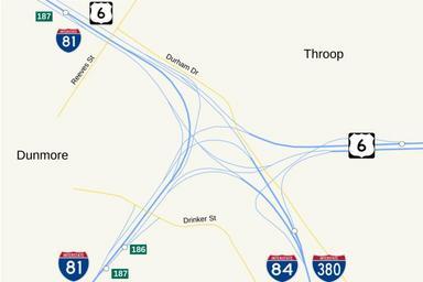 | Keywords: Throop-Dunmore Interchange.svg Inkscape Interchange in Throop and Dunmore Pennsylvania consisting of I-81 I-84 I-380 and US 6 Traced from the United States Geological Survey Own 2007-11-04 JohnnyAlbert10 Road maps of Pennsylvania Road junctions |