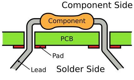 | Keywords: Through-Hole Mounted Component.svg en A diagram showing how a through-hole mounted component is inserted in to a PCB prior to soldering Notice how the leads are bent to prevent the component falling out own Inductiveload 2009-07-12 Soldering |