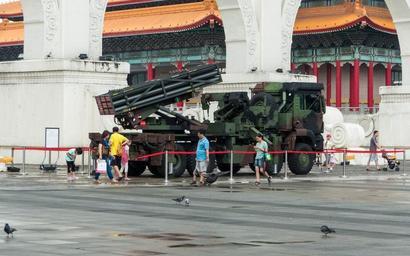 | Keywords: Thunderbolt 2000 MLRS in Front of CKS Memorial Hall Main Entrance 20140607.jpg zh-tw 上午雨勢稍歇,鴿子與遊客漫步於中正 念堂廣場入口前展示的雷 2000多管火箭系統附近 Own 玄史生 2014-06-07 Republic of China Army Forces 90th Anniversary Thunderbolt 2000 Multiple Launch Rocket System 玄史生写 文庫 Taken with Leica V-Lux 4 Cc-zero |