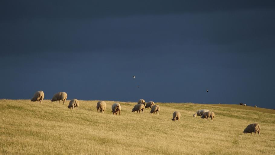 Keywords: thunderstorm dike sheep sheep dike north sea sheep on dyke gewitterstimmung