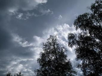 Keywords: thunderstorm weather dark sky clouds trees forest nature scenery