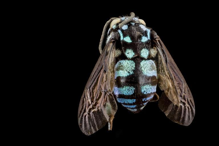 | Keywords: bug bugs bee bees pollinator pollinators animal animals animalia arthropod arthropods arthropoda insect insects insecta hymenoptera aculeata anthophila apoidea apidae apinae biml usgs philippines c.f. baker cfbaker island thyreus taxonomy:biniomial=thyreus wallacei taxonomy:biniomial=thyreuswallacei thyreus wallacei thyreuswallacei luzon blue blue-banded bluebanded nest parasite nestparasite amegilla zerene stacker zerenestacker stackshot native bee nativebee black background Spectacular in its glittering blue hairs, this humpbacked bee is another nest parasite, in this case it lays its eggs in the nests of Blue-banded bees (Amegilla). This particular baby was collected in the Philippines by C.F. Baker in the early part of the last century. Baker collected insects throughout the islands and his important collection ended up in the Smithsonian after his early death in the 20's. ~~~~~~~~~~{{{{{{0}}}}}}~~~~~~~~~~ All photographs are public domain, feel free to download and use as you wish. Photography Information: Canon Mark II 5D, Zerene Stacker, Stackshot Sled, 65mm Canon MP-E 1-5X macro lens, Twin Macro Flash in Styrofoam Cooler, F5.0, ISO 100, Shutter Speed 200 The murmuring of bees has ceased; But murmuring of some Posterior, prophetic, Has simultaneous come,-- The lower metres of the year, When nature's laugh is done,-- The Revelations of the book Whose Genesis is June. -Emily Dickinson Want some Useful Links to the Techniques We Use? Well now here you go Citizen: Basic USGSBIML set up: www.youtube.com/watch?v=S-_yvIsucOY USGSBIML Photoshopping Technique: Note that we now have added using the burn tool at 50% opacity set to shadows to clean up the halos that bleed into the black background from "hot" color sections of the picture. www.youtube.com/watch?v=Bdmx_8zqvN4 PDF of Basic USGSBIML Photography Set Up: ftp://ftpext.usgs.gov/pub/er/md/laurel/Droege/How%20to%20Take%20MacroPhotographs%20of%20Insects%20BIML%20Lab2.pdf Google Hangout Demonstration of Techniques: plus.google.com/events/c5569losvskrv2nu606ltof8odo or www.youtube.com/watch?v=4c15neFttoU Excellent Technical Form on Stacking: www.photomacrography.net/ Contact information: Sam Droege sdroege@usgs.gov 301 497 5840 Spectacular in its glittering blue hairs, this humpbacked bee is another nest parasite, in this case it lays its eggs in the nests of Blue-banded bees (Amegilla). This particular baby was collected in the Philippines by C.F. Baker in the early part of the last century. Baker collected insects throughout the islands and his important collection ended up in the Smithsonian after his early death in the 20's. ~~~~~~~~~~{{{{{{0}}}}}}~~~~~~~~~~ All photographs are public domain, feel free to download and use as you wish. Photography Information: Canon Mark II 5D, Zerene Stacker, Stackshot Sled, 65mm Canon MP-E 1-5X macro lens, Twin Macro Flash in Styrofoam Cooler, F5.0, ISO 100, Shutter Speed 200 The murmuring of bees has ceased; But murmuring of some Posterior, prophetic, Has simultaneous come,-- The lower metres of the year, When nature's laugh is done,-- The Revelations of the book Whose Genesis is June. -Emily Dickinson Want some Useful Links to the Techniques We Use? Well now here you go Citizen: Basic USGSBIML set up: www.youtube.com/watch?v=S-_yvIsucOY USGSBIML Photoshopping Technique: Note that we now have added using the burn tool at 50% opacity set to shadows to clean up the halos that bleed into the black background from "hot" color sections of the picture. www.youtube.com/watch?v=Bdmx_8zqvN4 PDF of Basic USGSBIML Photography Set Up: ftp://ftpext.usgs.gov/pub/er/md/laurel/Droege/How%20to%20Take%20MacroPhotographs%20of%20Insects%20BIML%20Lab2.pdf Google Hangout Demonstration of Techniques: plus.google.com/events/c5569losvskrv2nu606ltof8odo or www.youtube.com/watch?v=4c15neFttoU Excellent Technical Form on Stacking: www.photomacrography.net/ Contact information: Sam Droege sdroege@usgs.gov 301 497 5840 |