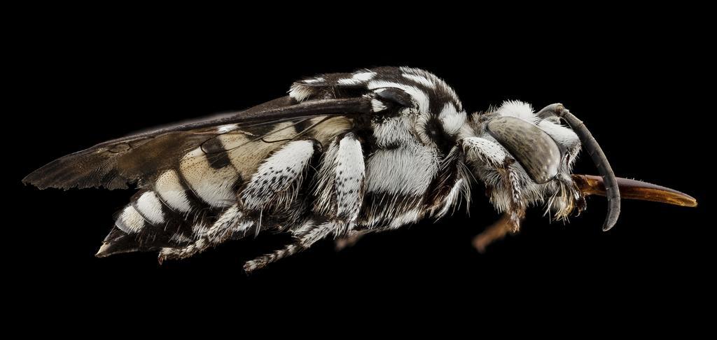 Keywords: bug bugs bee bees pollinator pollinators animal animals animalia arthropod arthropods arthropoda insect insects insecta hymenoptera aculeata anthophila apoidea apidae apinae biml usgs thyreus nest parasite amegilla zerene stacker zerenestacker stackshot africa ethiopia white white dots whitedots taxonomy:genus=thyreus tongue beauty beautiful macro stacked shot stackedshot stacking black background outdoor Another Thyreus...this one white and of unknown species and from Ethiopia. You can see from frazzled ends of the wings this female was relatively old. Like all Thyreus it breaks open the nests of Amegilla and perhaps other related species such as Anthophora. An odd rather hump-backed shape for a bee, lovely patterns of short appressed highly plumose brilliant white hairs. ~~~~~~~~~~{{{{{{0}}}}}}~~~~~~~~~~ All photographs are public domain, feel free to download and use as you wish. Photography Information: Canon Mark II 5D, Zerene Stacker, Stackshot Sled, 65mm Canon MP-E 1-5X macro lens, Twin Macro Flash in Styrofoam Cooler, F5.0, ISO 100, Shutter Speed 200 The murmuring of bees has ceased; But murmuring of some Posterior, prophetic, Has simultaneous come,-- The lower metres of the year, When nature's laugh is done,-- The Revelations of the book Whose Genesis is June. -Emily Dickinson Want some Useful Links to the Techniques We Use? Well now here you go Citizen: Basic USGSBIML set up: www.youtube.com/watch?v=S-_yvIsucOY USGSBIML Photoshopping Technique: Note that we now have added using the burn tool at 50% opacity set to shadows to clean up the halos that bleed into the black background from "hot" color sections of the picture. www.youtube.com/watch?v=Bdmx_8zqvN4 PDF of Basic USGSBIML Photography Set Up: ftp://ftpext.usgs.gov/pub/er/md/laurel/Droege/How%20to%20Take%20MacroPhotographs%20of%20Insects%20BIML%20Lab2.pdf Google Hangout Demonstration of Techniques: plus.google.com/events/c5569losvskrv2nu606ltof8odo or www.youtube.com/watch?v=4c15neFttoU Excellent Technical Form on Stacking: www.photomacrography.net/ Contact information: Sam Droege sdroege@usgs.gov 301 497 5840 Another Thyreus...this one white and of unknown species and from Ethiopia. You can see from frazzled ends of the wings this female was relatively old. Like all Thyreus it breaks open the nests of Amegilla and perhaps other related species such as Anthophora. An odd rather hump-backed shape for a bee, lovely patterns of short appressed highly plumose brilliant white hairs. ~~~~~~~~~~{{{{{{0}}}}}}~~~~~~~~~~ All photographs are public domain, feel free to download and use as you wish. Photography Information: Canon Mark II 5D, Zerene Stacker, Stackshot Sled, 65mm Canon MP-E 1-5X macro lens, Twin Macro Flash in Styrofoam Cooler, F5.0, ISO 100, Shutter Speed 200 The murmuring of bees has ceased; But murmuring of some Posterior, prophetic, Has simultaneous come,-- The lower metres of the year, When nature's laugh is done,-- The Revelations of the book Whose Genesis is June. -Emily Dickinson Want some Useful Links to the Techniques We Use? Well now here you go Citizen: Basic USGSBIML set up: www.youtube.com/watch?v=S-_yvIsucOY USGSBIML Photoshopping Technique: Note that we now have added using the burn tool at 50% opacity set to shadows to clean up the halos that bleed into the black background from "hot" color sections of the picture. www.youtube.com/watch?v=Bdmx_8zqvN4 PDF of Basic USGSBIML Photography Set Up: ftp://ftpext.usgs.gov/pub/er/md/laurel/Droege/How%20to%20Take%20MacroPhotographs%20of%20Insects%20BIML%20Lab2.pdf Google Hangout Demonstration of Techniques: plus.google.com/events/c5569losvskrv2nu606ltof8odo or www.youtube.com/watch?v=4c15neFttoU Excellent Technical Form on Stacking: www.photomacrography.net/ Contact information: Sam Droege sdroege@usgs.gov 301 497 5840