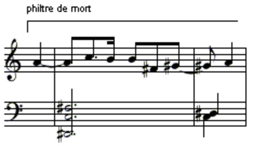 Keywords: Ti philtremort.png This image was copied from wikipedia fr The original description was Copyright Cette image a été créée par Zerioughfe avec MusiXTeX le package de LaTeX qui permet d'écrire de la musique Elle est donc libre de droits Zerioughfe Tristan et Isolde - Motif du philtre de mort loveless Tristan und Isolde Wagner Sheet music of Richard Wagner |