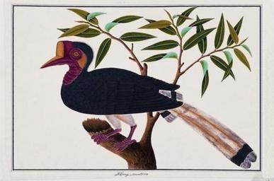 | Keywords: Tibang Muntooa (William Farquhar Collection, 1819–1823).jpg author anonymous Chinese artist A w watercolour drawing of the Helmeted Hornbill Rhinoplax vigil; known in Malay language Malay as burung enggang tebang The bird's tail has been depicted longer than it is on actual specimens It is now scarce in Malaysia and extinct in Singapore The drawing is one of 477 natural history drawings of plants and animals of Malacca and Singapore commissioned by William Farquhar between 1819 1823 watercolor paper cm 38 5 55 Institution National Museum of Singapore Goh Seng Choo Gallery <br> Singapore accession number Royal Asiatic Society RAS016 215; National Museum of Singapore SHM1995 3202 object history 17 June 1826 Donated in eight volumes by William Farquhar to the Museum of the Royal Asiatic Society of Great Britain and Ireland in London 1937 Six volumes lent by the Society to the Library of the British Museum Natural History now the Library of the Natural History Museum ; two volumes of botanical drawings retained in the Society's library 1991 Volumes lent to the Museum returned to the Society for valuation 20 October 1993 Sold by the Society at a Sotheby's auction in London to Goh Geok Khim for Singapore dollar S 3 million 1995 Donated by Goh to the Singapore History Museum now the National Museum of Singapore See Natural History Drawings below pp 32 “33 credit line N<sup>o</sup> 1 / Tibang Muntooa Watermark Russell Co 1810 Drawings of Birds from Malacca no 2 in the Royal Asiatic Society's collection cite book The William Farquhar Collection of Natural History Drawings Singapore Goh Geok Khim 1999 1 116 plate 22 978-981-3065-82-6 Editions Didier Millet ; National Museum of Singapore 2010 231 978-981-4217-69-9 Caption Helmeted Hornbill / Burung Enggang Tebang / Buceros vigil http //sg lifestyleasia com/var/lifestyleasia/storage/images/media/images/william-farquhar-collection-of-natural-history-drawings/3792474-1-eng-GB/william-farquhar-collection-of-natural-history-drawings_cover_655x380 jpg other versions PD-Art-100 Rhinoplax vigil William Farquhar Collection of Natural History Drawings |