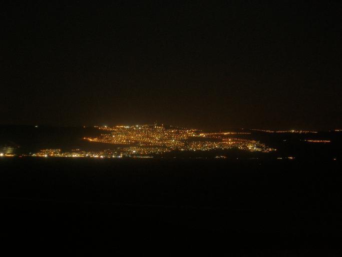 Keywords: Tiberias at night.JPG general view of Sea of Galilee and Tiberias at night taken fron moshav Ramot Own 2007-07 Pacman Night in Tiberias
