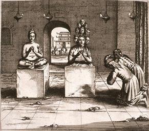 | Keywords: Tibet Athanasius-Kircher Johann-Grueber 1667.jpg en Tibetan Budhist worship in front of two statues of «Manipe» Bodhisattva Avalokiteshvara Cut from the book China Illustrata of Athanasius Kircher 1667 which he made from a painting of the Austrian Jesuit and traveller to India China and Tibet Johann Grueber Buddhistische Gläubige in Tibet verneigen sich vor zwei Statuen des «Manipe» Bodhisattva Avalokiteshvara Stich aus China Illustrata von Athanasius Kircher 1667 nach den Beschreibungen/Skizzen des österreichischen Jesuiten Johann Grueber der nach Indien China und Tibet gereist war bar Zwoa Budistn in Tibet fabaing si foa zwoa Schdatuen fum «Manipe» Bodhisattva Avalokiteshvara A Schdich aus'n Buach China Illustrata fum Athanasius Kircher 1667 dén dea nåch da Bschraibung bzw ana Skizzn fum ésdaraichischn Jesuitn Johann Grueber gmåcht håd dea dafoa duach Asien groast is und in Indien China und Tibet woa Völkerkundemuseum der Universität Zürich http //www musethno uzh ch/vmz/presseinfos/tibet htm Athanasius Kircher Johann Grueber 1667 PD-old-100 Tibet in European engravings Tibet in the 17th century Tibetan Buddhism Tibet in China Illustrata Völkerkundemuseum Zürich 1667 |