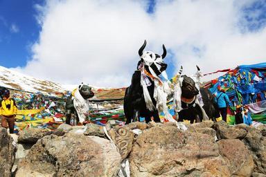 Keywords: tibet mila mountains yakou copper and yak blue sky white cloud ben-hadad prayer flags