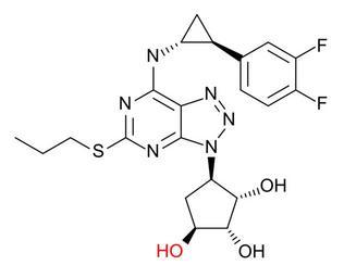 Keywords: Ticagrelor metabolite.svg ticagrelor It is formed via de-hydroxyethylation at position 5 of the cyclopentane ring OH group shown red own Anypodetos 2012-01-09 BKchem 001 -check Ticagrelor Metabolism Cc-zero