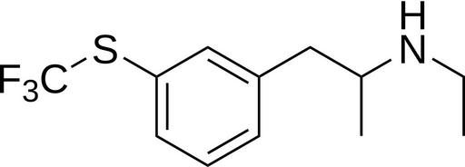 Keywords: Tiflorex.svg en 2D structure of appetite suppressant tiflorex own Harbin 2009-08-28 Anorectics Stimulants Phenethylamines Trifluoromethyl compounds Thiophenol ethers