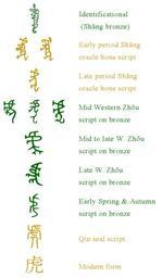 | Keywords: Tiger colored gif.gif en Chart comparing Chinese character 虎 hu3 'tiger' from bronze inscriptions to other forms Created entirely by uploader in Word and Photoshop using CGI rendition of tiger clan emblem from rubbing plus typed bronze oracle bone and seal fonts made available for public use by the Academia Sinica's Chinese Document Processing Laboratory CDPL under the Institute of Information Science with assistance from the Bronze Inscription Research Team BIRT under the Institute of History and Philology of the Academia Sinica Own Dragonbones 2008-05-31 na na na Bronze inscriptions 虎 Chinese character for tiger |