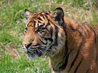 Keywords: tiger cub big cat feline young wildlife nature outdoors head sumatran tiger close-up photo image beautiful cute