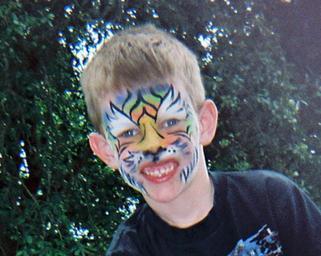 Keywords: Tiger Face paint.jpg en Child in Tiger face paint own JGKlein 2010 Facepainting Smiling boys