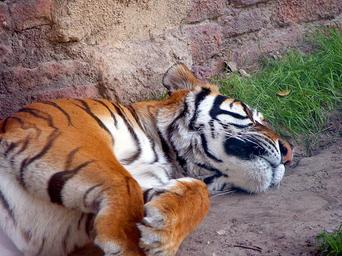 Keywords: tiger large cat wildlife animal sleeping mammal large feline fur predator wild big carnivore creature danger lying sleep panthera endangered hunter head furry fang face roar