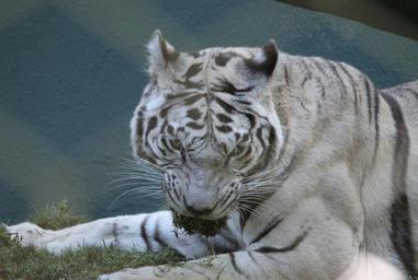 Keywords: tiger white albino cat wild wildlife feline predator stripes mammal carnivore bengal endangered