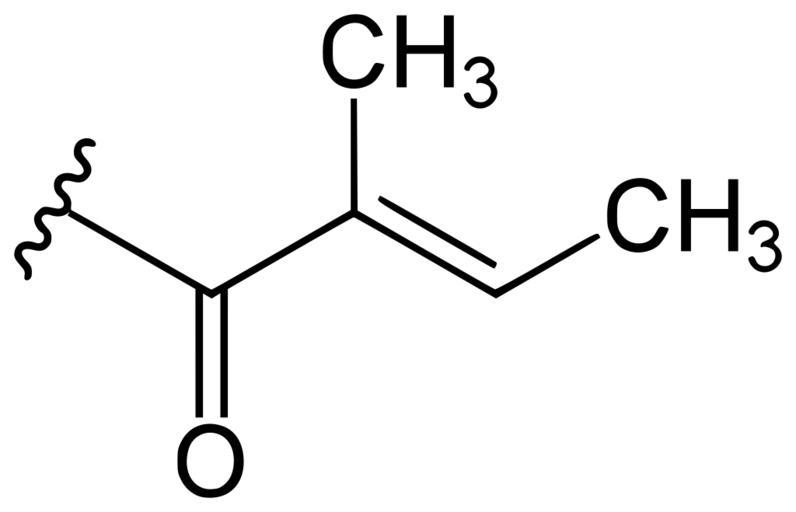 Keywords: Tigloyl part.svg en part of Tiglic acid; Tigloyl de Teil der Tiglinsäure Own Yikrazuul 2008-08-15 Carboxylic acids