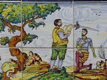 Keywords: tile ceramic pottery spain castile la mancha image azuleijo don quijote cervantes middle ages knight seal sword tree
