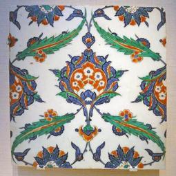 | Keywords: Tile, Iznik, Turkey, c. 1575 AD, stonepaste body painted under glaze - Freer Gallery of Art - DSC05441.JPG Wall tile with bole red emerald green and cobalt blue decoration place of creation Iznik Turkey c 1575 Fritware/stonepaste decorated under a clear glaze 31 3 x 30 0 x 2 4 cm Institution Freer Gallery of Art object history Purchased credit line accession number http //www asia si edu/collections/edan/object php q fsg_F2001 15 F2001 15 Daderot 2013-02-12 15 15 29 other versions cc-zero Ceramics of Turkey in the Freer Gallery of Art Uploaded with UploadWizard İznik ceramics |