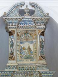 Keywords: tiled stove oven hellbrunn strobl workshop faience stove friedrich strobl castle hellbrunn salzburg colourful glazed glazed