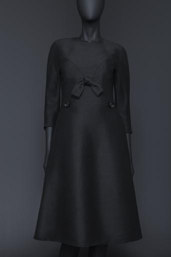 Keywords: Till boken - utställningen Kunglig Vintage - Livrustkammaren - 87637.tif Klänning i svart ull med trekvartslång ärm Lös svart ärmlös foderklänning i svart siden eller viscose Ganska stora svarta urgröpta knappar av plast Klänningstyget är vävt i någon sorts satinbindning fast vågrät sådan väften är av någon sorts hård ull behöver inte vara får eller syntet och är de trådar som är synliga från rätan Varpen ser ut att vara syntet eller siden den är gles och ser ut att bara vara där för att fästa väften Klänningen är knälång och något utställd Knäpps med dragkedja i ryggen dekorerad med rosett på bröstet och har fuskknapphål och knappar på höften Den har trekvartslånga kimonoärmar <br/>Klänningens övre del och ärmar är i ett och samma stycke fram och i två stycken bak för isättning av dragkedja Halsen är högt skuren Framstycket är avskuret ovanför bysten och går ner i ett mjukt V på bysten Bakstyckerna har en mer rak linje över ryggen dock något buktande neråt mot mitter och har två insnitt för axeln mot halsen nära axelsömmen Nederdelen av klänningen Sidsömarna är något bakåtflyttade går in i midjan och ut något från stussen och ner till fåll Framstyckets nederdel som är format efter det mjuka V -et har längsgående bystinsnitt som börjar några cm ner från denna skärning mitt på bystens högsta punkt och går sen snett ner mot sidsömmens fåll och slutar 1 cm från den Under bysten mellan dessa insnitt går en söm som kapar av V -ets vassa del där är sedan placerad en rosett Denna rosett är gjord på följande sätt Tyget är vändsytt som en tunnel där ändarna endast är invikta och sedan pressade Denna har man sedan slått en knut på Strax under midjan någon cm från insnittssömmen sitter på mittstycket två paspoalerade knapphål med en liten skylt under och en knapp dessa har alltså ingen funktion utan är bara till för prydnad Bakstyckets nederdel är i två delar med en för hand påsydd dragkedja mitt bak och hyska och hake i halsen mittbaksömmen går ut något från midjan och ner till fållen Dom har två längsgående insnitt för midjan från den söm som skiljer överdel och underdel från varann till stussen Alla sömsmåner är kastade för hand och så även fållar nertill och i ärmarna På fållen nertill har man sytt på ett stycke sidenfoder kanske har man lagt ner klänningen eller så har tyget inte räckt Klänningens överdel med ärmar är dubbelsydd med svart organza och ett foder i syntet eller linneliknande tyg över axlarna är på sytt mot halsringningen En ärmlös underklänning i svart fodertyg av siden eller viskos är fastsydd med endast 4 trådtrensar ursprungligen 5 mot halsringningen en på var sida om dragkedjan en i var axelsöm och en mitt fram som lossnat Underklänningen har maskinkastade sömsmåner infodringar dragkjedja hyska och hake allt ligger mot kroppen På denna är två ettiketter fastsydda på vänster sida i bakhalsen sitter en svart med vit text H M Drottningens hovleverantör MÄRTASKOLANS FRANSKA AVDELNING STOCKHOLM Och på höger sida sitter en vit med svart text IRENE DANA 6 rue Chambiges PARIS original caption Till boken / utställningen Kunglig Vintage <br/> Nyckelord Kunglig Vintage Klänning Svart Ylle Rosett 1950-tal Föremålsbild decade 1950 woollen Färg svart d1 - dräkt - yttermaterial material ylle size cm 107 liv mitt bak size cm 125 kjol LRK Margaretha fru Ambler Kunglig Vintage 2011-2012 Livrustkammaren Kunglig Vintage Kalmar slott 2013 Kalmar slott place of origin original filename lm_dig6793 68741 inventory number LRK 32111 87637 CC-BY-SA Erik Lernestål Erik Lernestål Black 1950s fashion Media contributed by LSH dim-with multiple size templates Media contributed by LSH unmatched creator Media contributed by LSH unmatched keyword Color images from Livrustkammaren 20th century clothing in Livrustkammaren Media contributed by LSH 2013-10 |