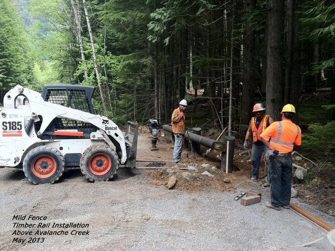 Keywords: Timber rail installation above Avalanche Creek, May 2013 GlacierNPS