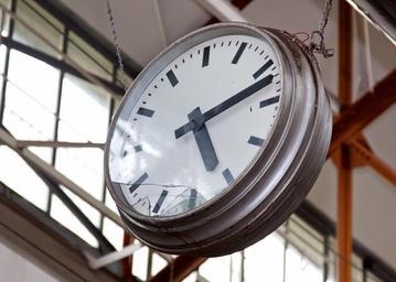 Keywords: time clock defect showing industry factory hall time indicating watches clock face time of hours analog white silver tower