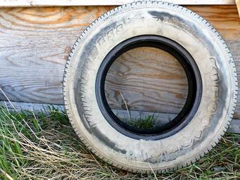 Keywords: tire wheel dusty abandoned weathered automobile rubber auto