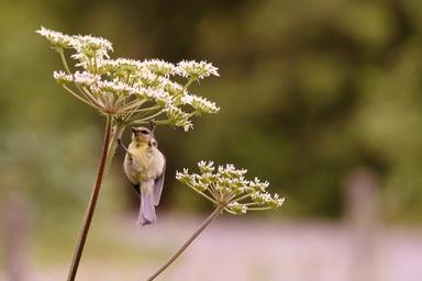 Keywords: tit bird animal nature animals birds feather food fodder plant yarrow depend claws out peck eat songbird small bird small plant flower blossom bloom wild flower flowers flora fauna eifel