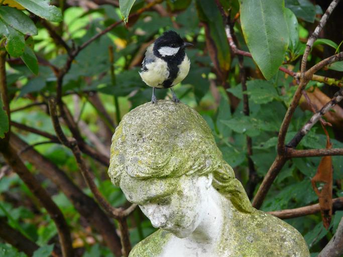 Keywords: tit parus major fig stone figure madonna sit head cheeky stone woman statue sculpture strubblig