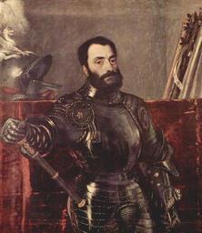 | Keywords: Tizian 062.jpg Artwork Creator Tizian Francesco Maria I della Rovere de 1490-1538 1536-1538 Oil on canvas cm 114 3 100 Institution Uffizi de Pendant zum Porträt seiner Gattin Eleonora Gonzaga ebenfalls Uffizien The Yorck Project 10 000 Meisterwerke der Malerei DVD-ROM 2002 ISBN 3936122202 Distributed by DIRECTMEDIA Publishing GmbH http //mail wikipedia org/pipermail/wikide-l/2005-April/012195 html other versions <gallery>Titian - Portrait of Francesco Maria della Rovere Duke of Urbino - WGA22982 jpg</gallery> PD-old-100 PD-Art-YorckProject Male portraits by Titian Paintings in the Uffizi Gallery - Room 28 Tiziano and Sebastiano del Piombo Francesco Maria I della Rovere 1537 1530s oil on canvas paintings Portrait 1530s paintings in Italy 1530s portrait paintings Male 16th-century men looking at viewer in art 16th-century oil on canvas paintings in Italy 16th-century oil portraits of standing men at three-quarter length wearing armour 1537 16th-century portrait paintings in the Uffizi Gallery 1537 Codpieces Military helmets in portraits 1537 Portrait paintings of bearded men Portrait paintings of men holding marshal's baton 1537 Renaissance portraits of men |