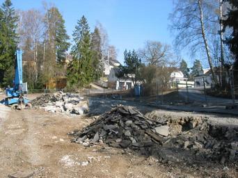 Keywords: Tjernsrud demolished.jpg en Tjernsrud station in a demolished state Own Punkmorten 2009-04-24 Reconstruction of Kolsåsbanen 2006-2014 Tjernsrud stasjon Destroyed buildings