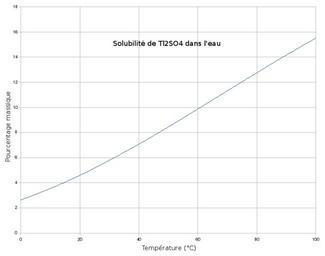 | Keywords: Tl2SO4 Solubilite dans eau.png fr Solubilité du sulfate de thallium dans l'eau en fonction de la température Créée par mes soins avec OpenOffice org Calc et The Gimp d'après http //www hbcpnetbase com/ Handbook of Chemistry Physics Epop Thallium compounds Sulfates Chemical properties |