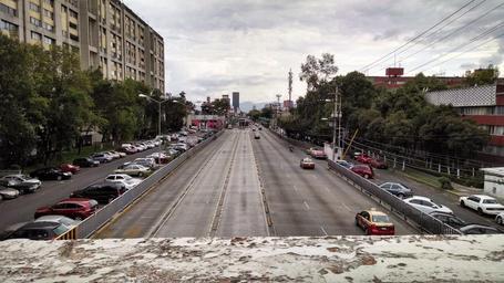 Keywords: tlatelolco city grey asphalt building mexico city cars bridge