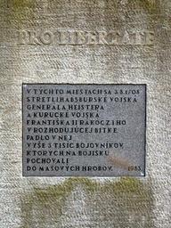| Keywords: TN battle memorial.JPG Plaque Trenčín battle memorial in Trenčianska Turná Text on the plaque In this places on the 3rd of August 1708 Habsburg forces of general Heister and the Kuruc army of the Ferenc II Rákoczi met in decisive battle in which 3000 warriors have died they were buried in mass graves Date of instalation of plaque - 1983 Pamätník bitky pri Trenčíne nachádzajúci sa v miestnej časti Hámry 2 km východne od Trenčianskej Turnej Tabuľa bola inštalovaná v roku 1983 Own 2006-09-23 Ondrej Pelech Pelex 48 50 53 05 N 18 2 40 13 E Trenčianska Turná Plaques in Trenčín District Memorials of the Rákóczi's War for Independence War memorials in Trenčín District |