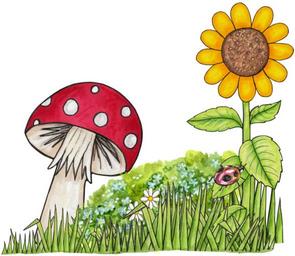 Keywords: toadstool sunflower garden fairytale sweet girl spring nature cartoon country landscape cottage plant house flower