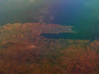 Keywords: Tobruk air view01.jpg en A view of Tobruk from an airplane ar صورة لطبرق من داخل طائرة own Maher27777 2014-04-11 Tobruk Aerial photographs of Libya