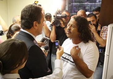 | Keywords: indoor O presidente do Sindicato dos Servidores do Poder Legislativo do Estado do Paraná (Sindilegis/PR) e ex-líder dos seguranças da Casa, Edenilson Carlos Ferry, vulgo Tôca, protocolou nesta segunda-feira (7) requerimento ao presidente da Assembleia Legislativa, deputado Valdir Rossoni (PSDB), comunicando sua licença do cargo de presidente do sindicato. De acordo com o documento entregue pelo advogado Cláudio Dalledone Júnior, o afastamento temporário de Tôca da presidência do Singilegis/PR tem o "objetivo de preservar os interesses dos servidores sindicalizados, evitando que qualquer eventual rusga causada pelos últimos acontecimentos repercutam na definição dos destinos dos vários funcionários da ALEP". Tôca responde na Justiça pela coautoria de um duplo homicídio. De acordo com a denúncia do Ministério Público Estadual (MP), o crimo ocorreu em Colombo, na Região Metropolitana de Curitiba, em fevereiro de 1990. Foto de arquivo do dia 02/02/2011 durante a abertura do cofre da segurança: Nani Gois / Assembleia Legislativa do Paraná O presidente do Sindicato dos Servidores do Poder Legislativo do Estado do Paraná (Sindilegis/PR) e ex-líder dos seguranças da Casa, Edenilson Carlos Ferry, vulgo Tôca, protocolou nesta segunda-feira (7) requerimento ao presidente da Assembleia Legislativa, deputado Valdir Rossoni (PSDB), comunicando sua licença do cargo de presidente do sindicato. De acordo com o documento entregue pelo advogado Cláudio Dalledone Júnior, o afastamento temporário de Tôca da presidência do Singilegis/PR tem o "objetivo de preservar os interesses dos servidores sindicalizados, evitando que qualquer eventual rusga causada pelos últimos acontecimentos repercutam na definição dos destinos dos vários funcionários da ALEP". Tôca responde na Justiça pela coautoria de um duplo homicídio. De acordo com a denúncia do Ministério Público Estadual (MP), o crimo ocorreu em Colombo, na Região Metropolitana de Curitiba, em fevereiro de 1990. Foto de arquivo do dia 02/02/2011 durante a abertura do cofre da segurança: Nani Gois / Assembleia Legislativa do Paraná |