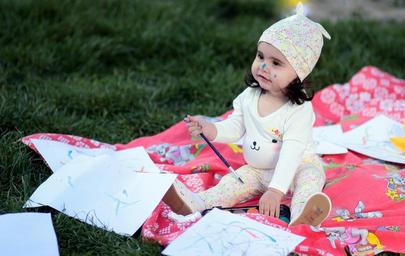 Keywords: toddler painting girl watercolors funny