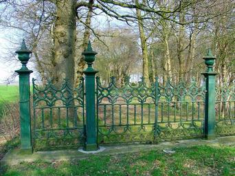 | Keywords: Toegangshek Unikenbegraafplaats Stadskanaal.jpg 516229 Toegangshek bij de Unikenbegraafplaats rijksmonument Stadskanaal own 2010-04-12 Gouwenaar Rijksmonumenten in Stadskanaal Buildings in Stadskanaal Fences in the Netherlands Cemetery fences Fence posts |