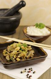 Keywords: tofu mushrooms fry up mushroom meal tasty lunch enjoy delicious eat food main course substantial pan cook vegetables rice leek spring onion young onion rustic