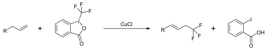 Keywords: Togni s reagent II reaction 03.svg en Copper-catalyzed trifluormethylation of unactivated olefins de Kupfer-katalysierte Trifluormethylierung an nichtaktivierte Olefine own Steffen 962 2014-01-14 PD-chem Togni's reagent II Cc-zero