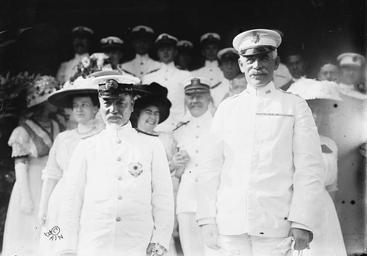 | Keywords: TogoGenBarryWestPoint.jpg Togo at West Point with General Barry Photo shows Japanese naval hero Admiral Togo Heihachiro left with Major General Thomas Henry Barry superintendent of the U S Military Academy which honored Admiral Togo at West Point New York in August 1911 Small group of unidentified women and uniformed soldiers seen in background Bain News Service photo via Library of Congress website http //hdl loc gov/loc pnp/ggbain 09525 converted from TIFF to jpg and cropped before upload http //lcweb2 loc gov/cgi-bin/query/I ggbain 1 /temp/~pp_YS7h displayType 1 m856sd ggbain m856sf 09525 ggbai Also at c 12 August 1911 Unnamed photographer for Bain News Service PD-Bain <b style color 060; ><i>R</i>levse</b> ¢ <span style color 990; >Talk</span> ¢ </span> 2009-04-26 DEFAULTSORT Barry Thomas Henry 1911 photographs Thomas Henry Barry Togo Heihachiro United States Military Academy |