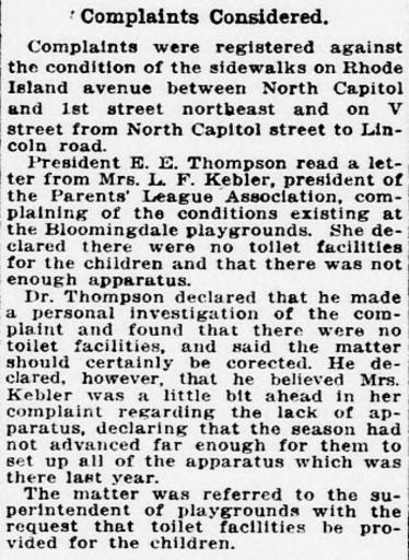Keywords: northcapitolandeckingtoncitizens'association northcapitolandeckingtoncitizensassociation bloomingdaleplayground mcmillanpark toilets blackandwhite monochrome text black and white Article describing complaint of lack of toilet facilities at Bloomingdale playground and investigation by North Capitol and Eckington Citizens' Association. Part 2. Original: chroniclingamerica.loc.gov/lccn/sn83045462/1915-04-28/ed-... Article describing complaint of lack of toilet facilities at Bloomingdale playground and investigation by North Capitol and Eckington Citizens' Association. Part 2. Original: chroniclingamerica.loc.gov/lccn/sn83045462/1915-04-28/ed-... |