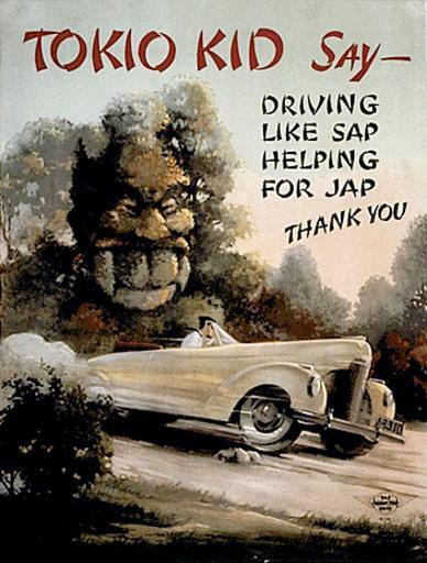 | Keywords: Tokio Kid Say 3.jpg en World War II-era United States propaganda poster Content reads TOKIO KID Say - Driving like sap helping for Jap Thank you United States National Archives Created by US Federal Government commissioned by Douglas Aircraft Company subsidized by War Production Board ca other date between 1941 1945 PD-USGov See also File Tokio Kid Say png File Tokio Kid Say 2 jpg Tokio Kid Say | ||||