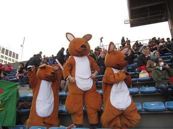 Keywords: Tokyo Sevens 2012 3.JPG en Tokyo Sevens 2012 in Chichibunomiya Rugby Stadium ja 京セブンズ2012 own Waka77 2012-04-12 Cc-zero Rugby sevens Chichibunomiya Rugby Stadium 2012 in Tokyo Animal costumes Kangaroos in art