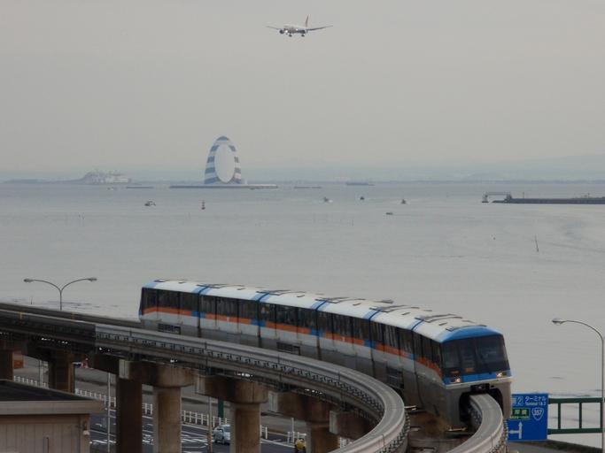 | Keywords: TokyoMonorail 1000 and JAL B777-246 20101212.jpg  en EMU type 1000 of Tokyo Monorail The airplane that is landing in the rear side is B777-246 of Japan Airlines Japan Airlines fleet 2002 livery Boeing 777-200 Tokyo International Airport TokyoMonorail 1000 and JAL B777 |