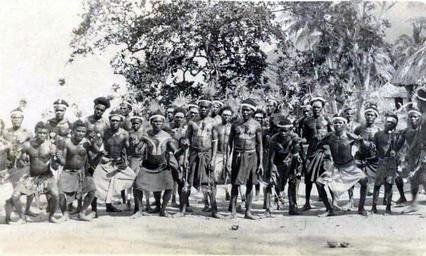 | Keywords: Tolai dancers, Nodup.jpg Tolai people Nodup near the town of Rabaul Gazelle Peninsula of New Britain Papua New Guinea c 1918 Private photograph printed on Kodak Austral stock Tolai-Volk Gazelle-Halbinsel von Neubritannien Papua-Neuguinea <br /> Tänzer in Nodup nahe der Stadt Rabaul 1918 privates Foto http //www oceania-ethnographica com/mel142 html Photographer unidentified Australian naval serviceman ~ 1918 PD-old Tolai AAdance Male dancers Dancers People in 1918 | ||||