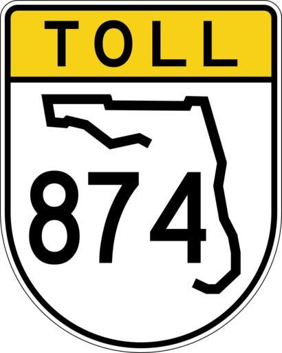 Keywords: Toll Florida 874.svg spuiother 24 in by 30 in 600 mm by 750 mm Florida toll State Road shield made to the specifications of the http //www dot state fl us/trafficoperations/SignLibrary/Guide/sign_library_guide htm sign detail Uses the http //www triskele com/fonts/index html Roadgeek 2005 fonts United States law does not permit the copyrighting of typeface designs and the fonts are meant to be copies of a U S Government-produced work anyway Colors are from http //mutcd fhwa dot gov/kno-colorspec htm Pantone Green 342 converted to RGB by http //www reeddesign co uk/test/pantone2rgb html The outside border has a width of 1 1/16 in and a color of black so it shows up; in reality signs have no outside border Note that the drawing provides little in the way of measurements but is generally very accurate The Florida outline is from the http //www dot state fl us/rddesign/rd/RTDS/17355s1-12of12 pdf sign detail for normal State Road shields which is used according to http //www dot state fl us/trafficoperations/temanual/Chapter2/2 23 pdf The state outline and number positioning is guessed Florida State Road shields 874 874 number |