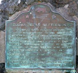 | Keywords: TolowaIndianSettlement Crescent City, CA.jpg 649 en California Registered Historical Landmark No 649 Site of old Indian Village at Pebble Beach Crescent City California California Registered Historical Landmark No 649 plaque reads Tolowa Indian Settlements At the time of white contact the principal villages of the native Tolowa Indians of northern Del Norte County were located at Battery Point in Crescent City Ta'atun Pebble Beach Meslteltun south of Point St George Tatintun and north of Point St George Tawiatun The major villages were almost completely independent economic units California Registered Historical Landmark No 649 Plaque placed by the California State Park Commission in cooperation with the Del Norte County Historical Society January 30 1965 original photo Ellin Beltz 2012-03-17 41 45 28 9 N 124 13 19 14 W region US Crescent City California Plaques in Del Norte County California Historical markers in Del Norte County California California Historical Landmarks plaques California Historical Landmarks in Del Norte County CaliforniaPhotographs by Ellin Beltz |